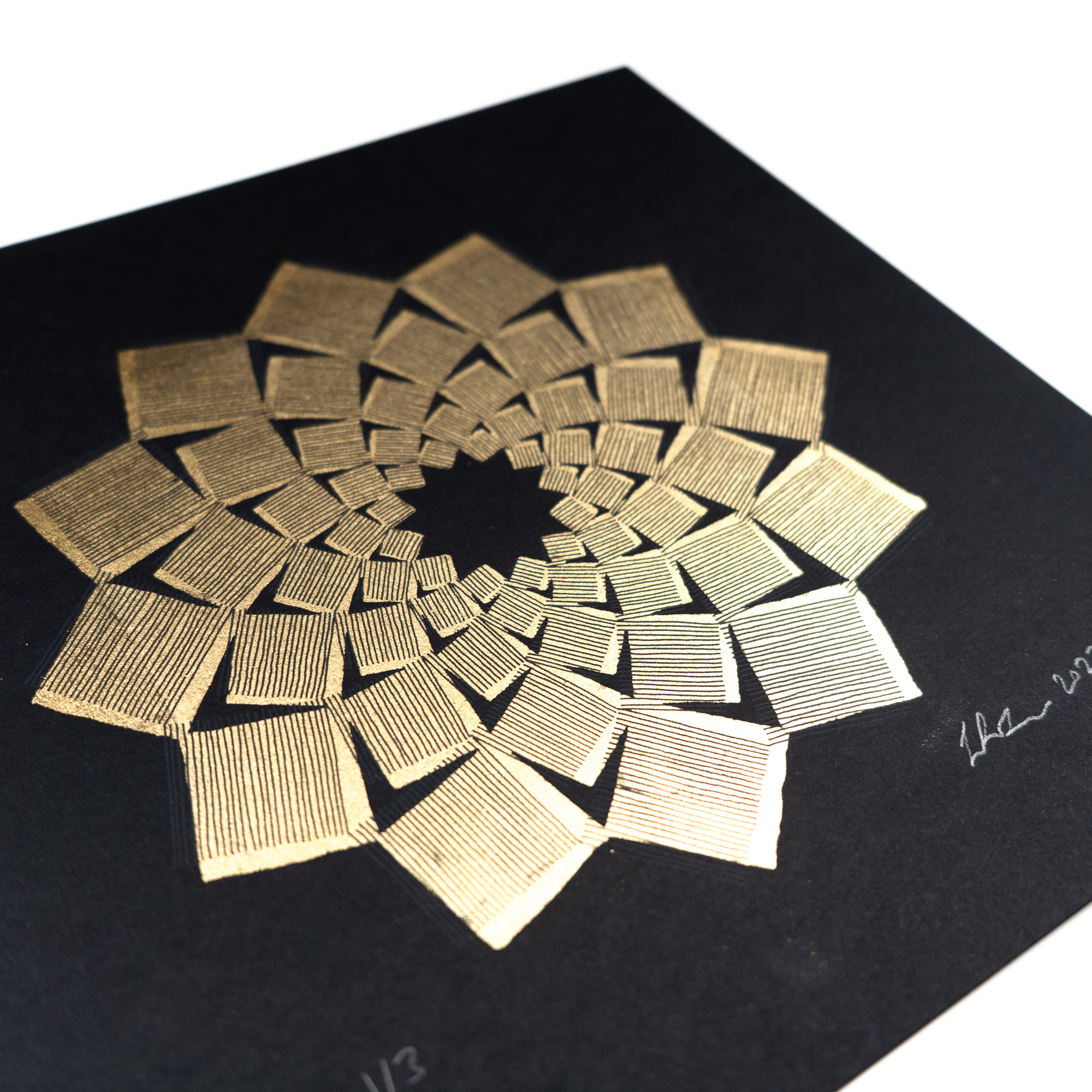 Screen Print with Imitation Gold Leaf on Somerset Satin Paper. Edition of 3.